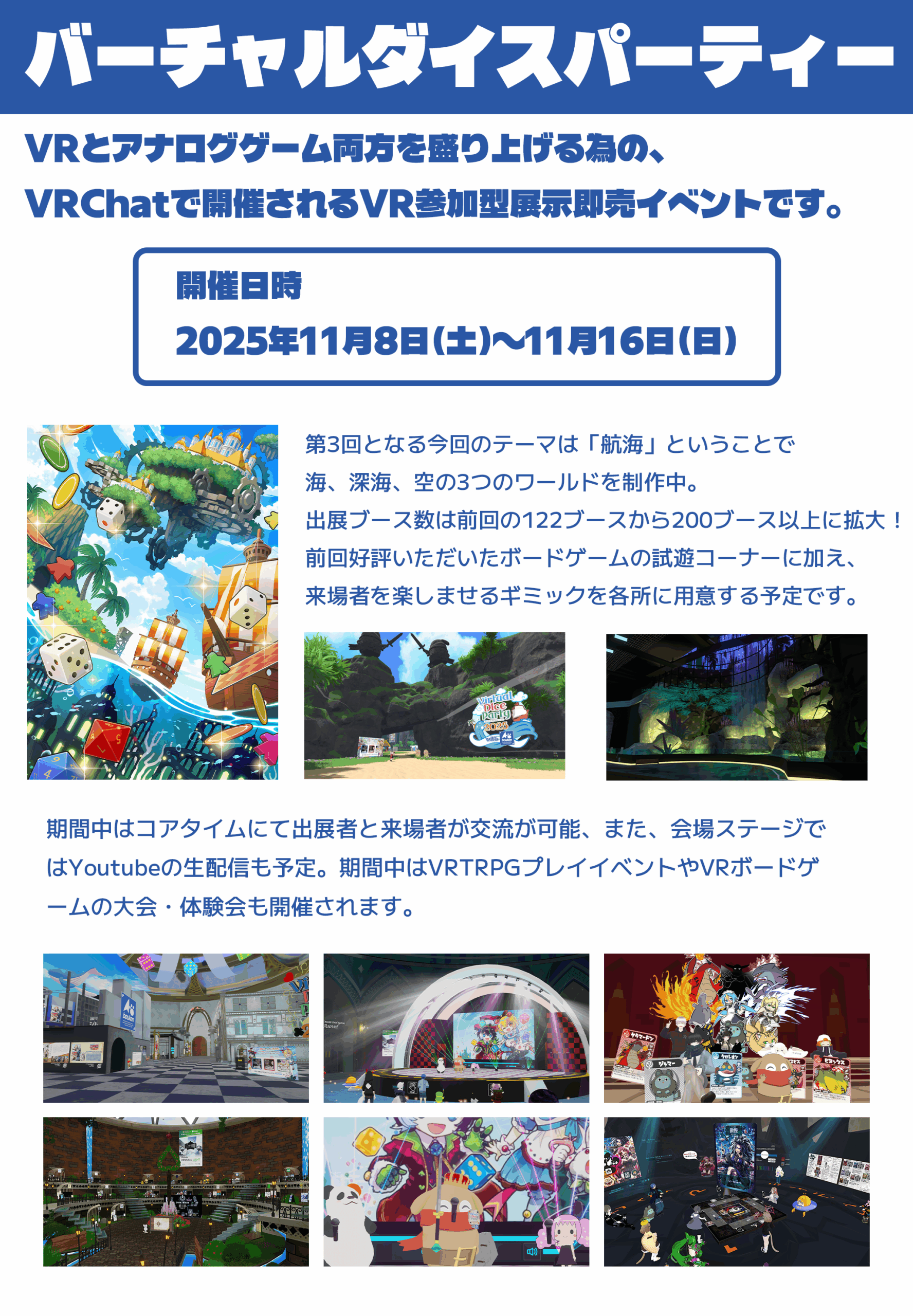 VRアナログゲーム体験展示即売会「バーチャルダイスパーティー」は今年、第3回を開催できる運びとなりました。