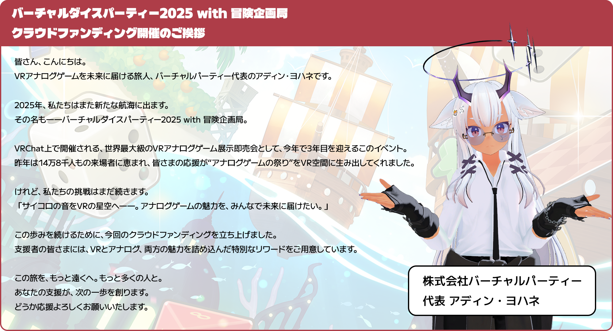 「バーチャルダイスパーティー2025with冒険企画局」継続支援クラウドファンディング